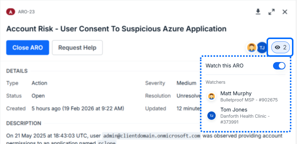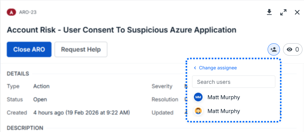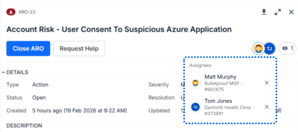 - Assignees: tracks who is responsible for addressing the ARO. When a user is assigned, they automatically become a watcher.