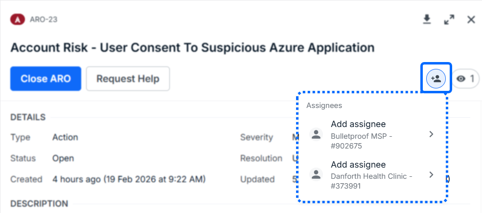 Partners have the ability to assign an internal (partner) and an external (end client) assignee to an ARO. End clients with access to the MDR Portal can not see internal assignees.