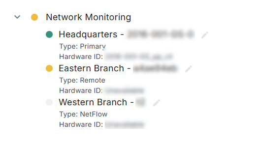 Most network sensors will display a hardware ID that uses the serial number, whereas netflow sensors will display a Hardware ID that uses a fragment of their UUID.