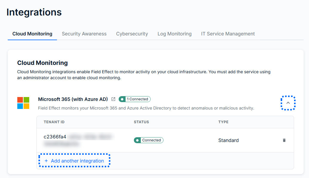 If you need to monitor two instances of the same cloud monitoring service, expand the card for that service on the Integrations page and follow the steps required for that service integration.